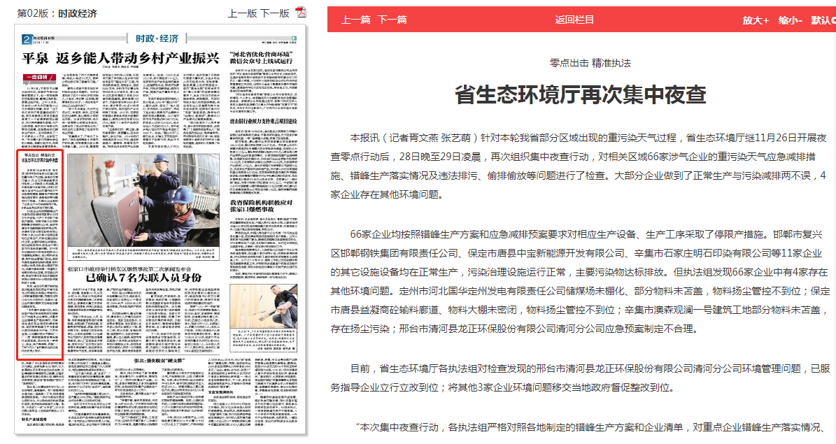 “本次集中夜查行动,各执法组严格对照各地制定的错峰生产方案和企业清单,对重点企业错峰生产落实情况、污染排放是否符合相应的绩效等级、是否按照错峰生产方案细化落实到具体生产线、工序和设备,以及重污染天气期间‘一厂一策’减排措施落实情况进行全面核查,坚决杜绝一律停工、停业、停产等简单、机械‘一刀切’行为。”省环境综合执法局相关负责人表示。