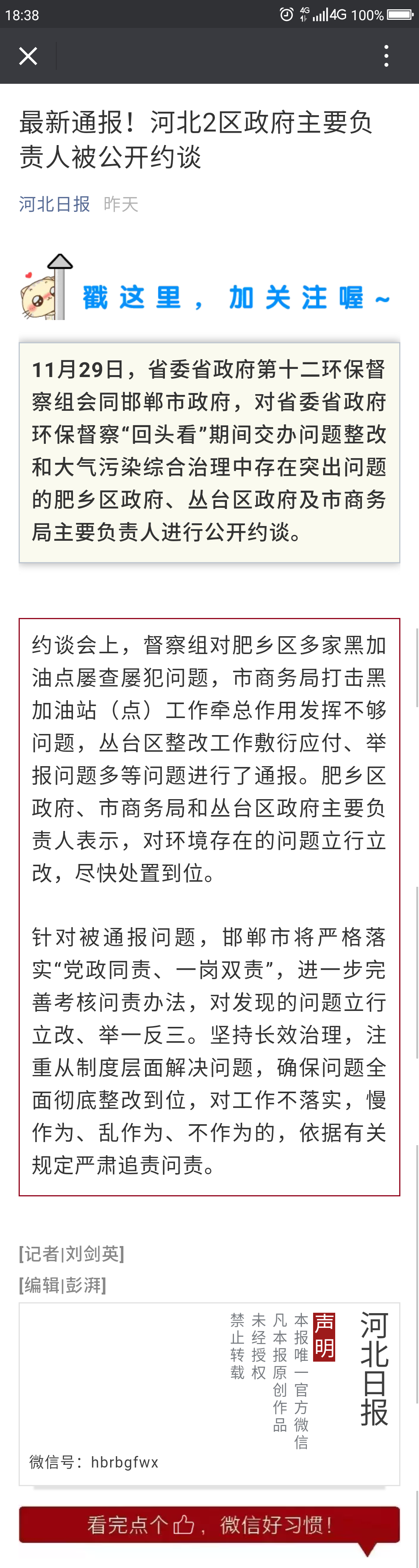 河北日报微信:最新通报!河北2区政府主要负责人被公开约谈