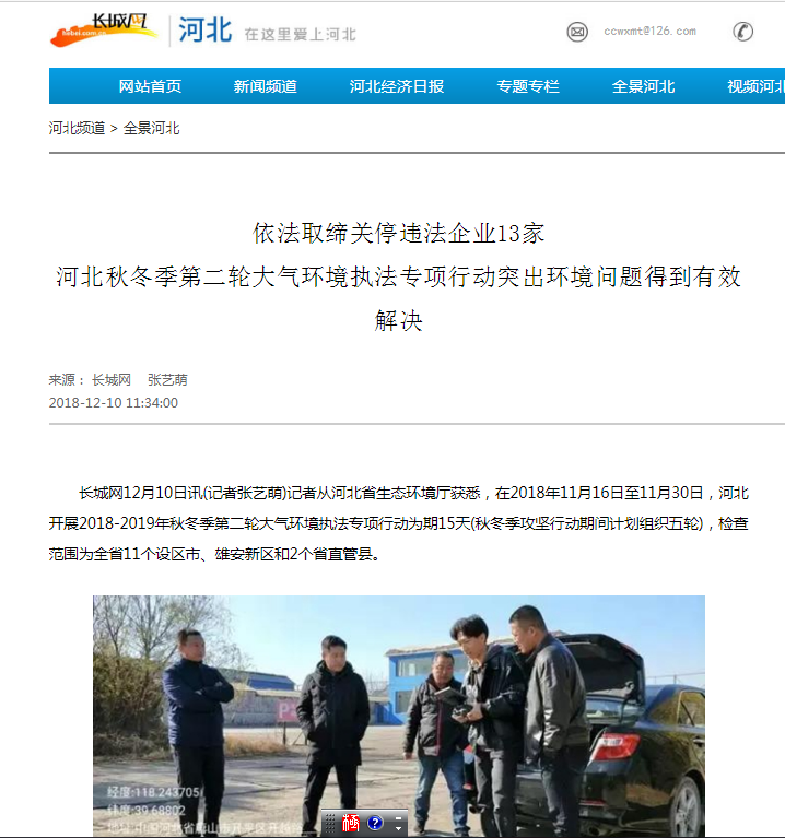 长城网12月10日讯(记者张艺萌)记者从东京热 获悉,在2018年11月16日至11月30日,河北开展2018-2019年秋冬季第二轮大气环境执法专项行动为期15天(秋冬季攻坚行动期间计划组织五轮),检查范围为全省11个设区市、雄安新区和2个省直管县。