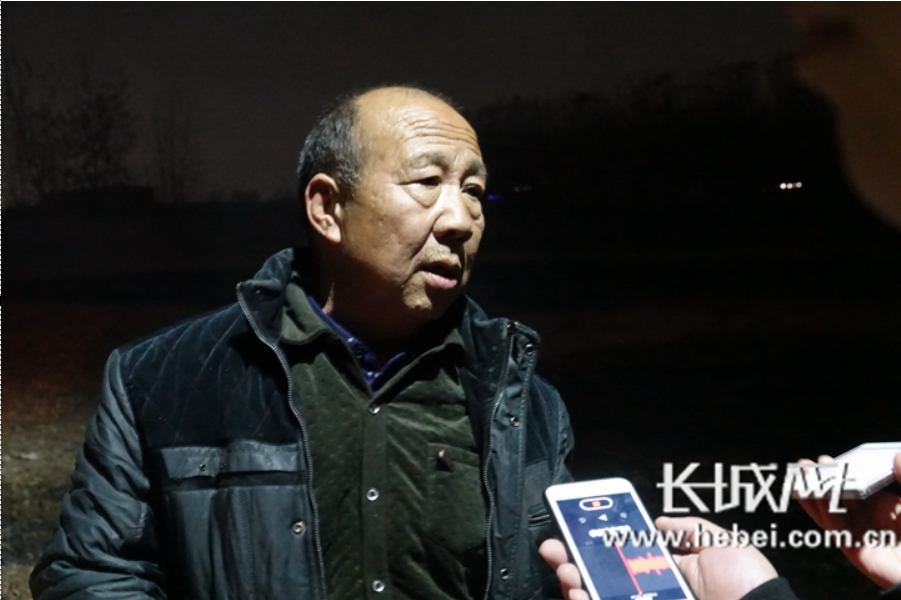 记者跟随执法组夜查,图为采访秸秆焚烧目击者村民。记者 张艺萌 摄