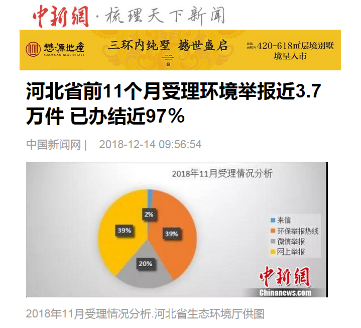 中新网:河北省前11个月受理环境举报近3.7万件 已办结近97%