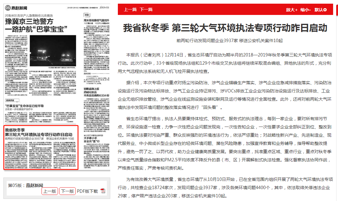 燕赵都市报:我省秋冬季 第三轮大气环境执法专项行动昨日启动