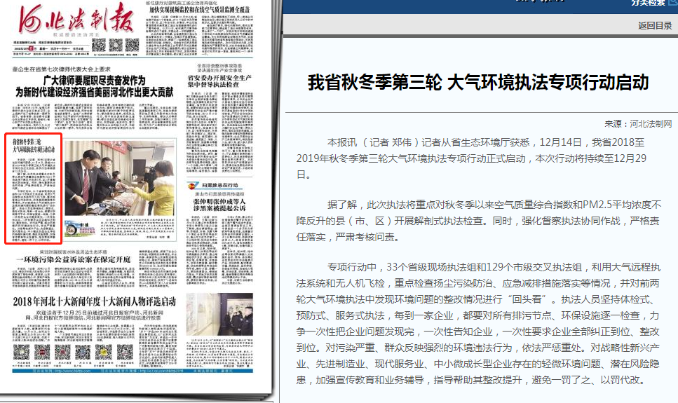 获悉,12月14日,我省2018至2019年秋冬季第三轮大气环境执法专项行动正式启动,本次行动将持续至12月29日。