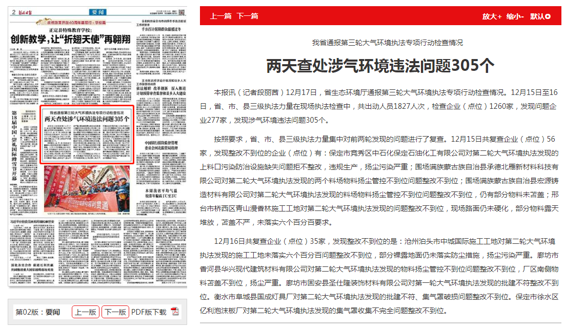 河北日报: 我省通报第三轮大气环境执法专项行动检查情况 两天查处涉气环境违法问题305个