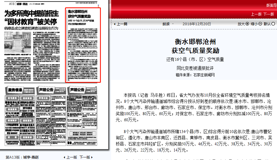 燕赵晚报:衡水邯郸沧州 获空气质量奖励