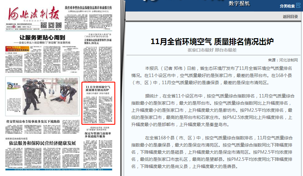 河北法制报:11月全省环境空气 质量排名情况出炉