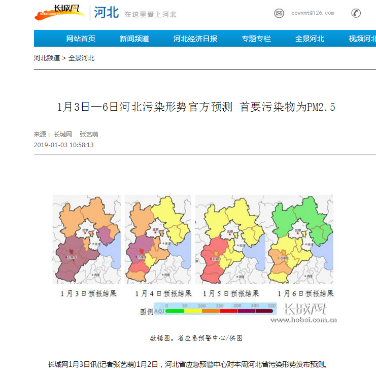长城网:1月3日—6日河北污染形势官方预测 首要污染物为PM2.5