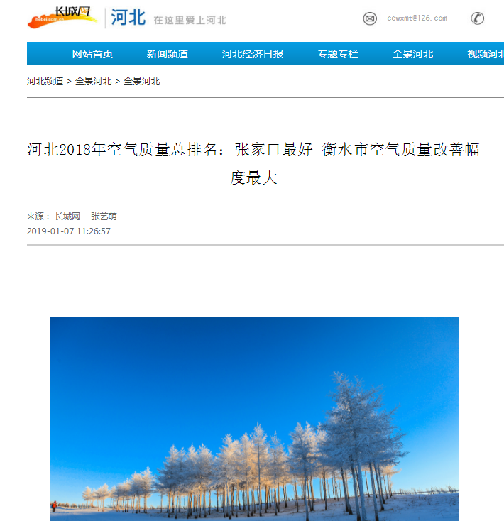 长城网:河北2018年空气质量总排名:张家口最好 衡水市空气质量改善幅度最大