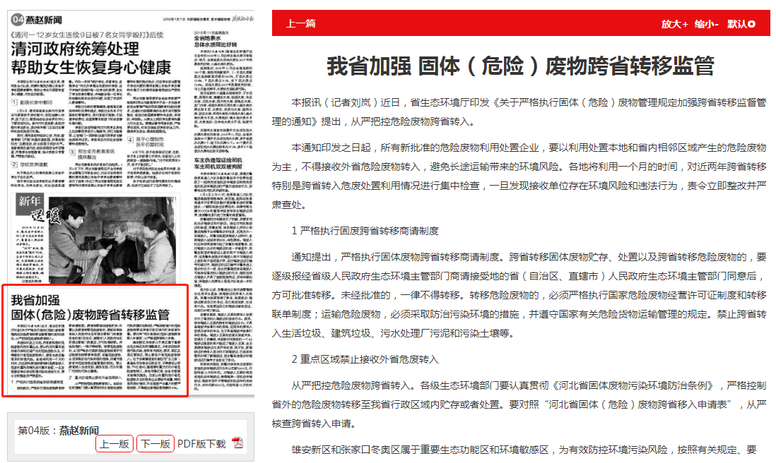 燕赵都市报:我省加强 固体(危险)废物跨省转移监管