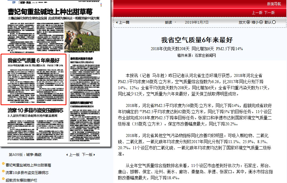燕赵晚报:我省空气质量6年来最好
