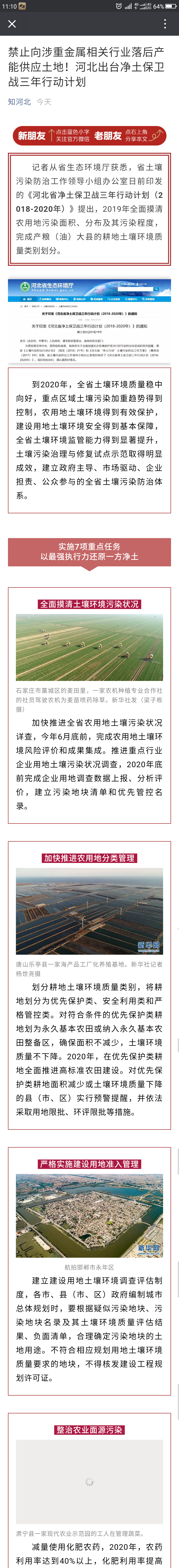 知河北:禁止向涉重金属相关行业落后产能供应土地!河北出台净土保卫战三年行动计划