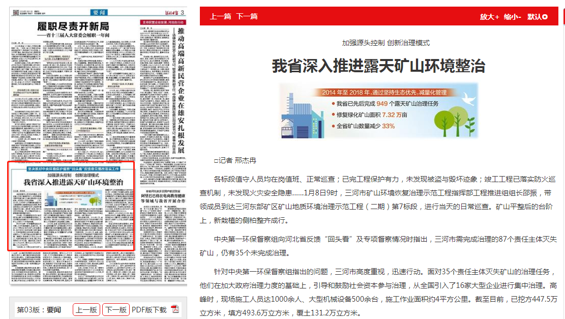 河北日报:加强源头控制 创新治理模式 我省深入推进露天矿山环境整治