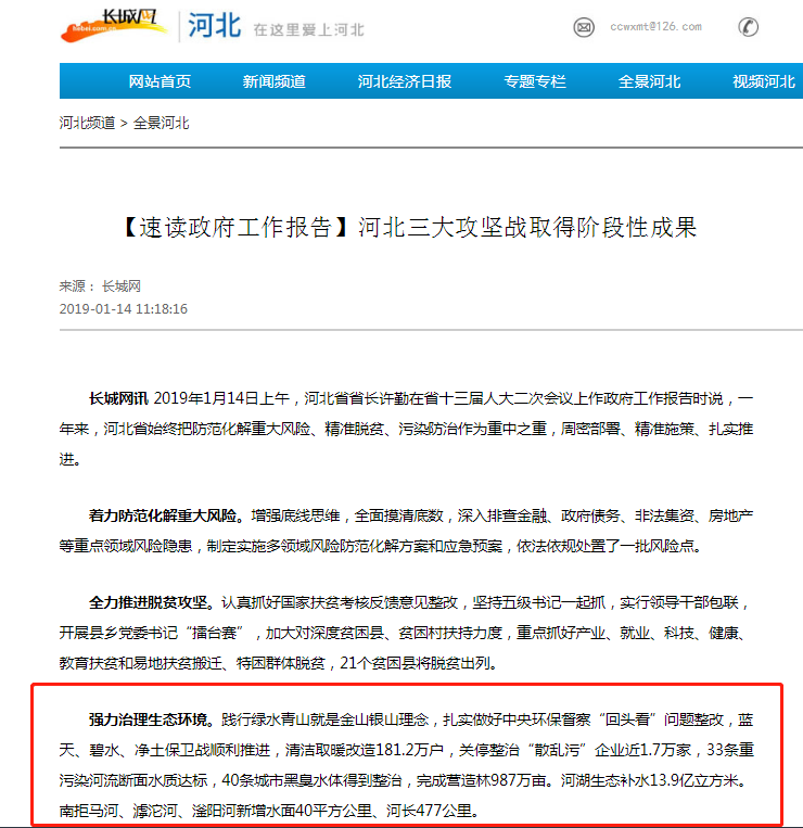 长城网 :【速读政府工作报告】河北三大攻坚战取得阶段性成果