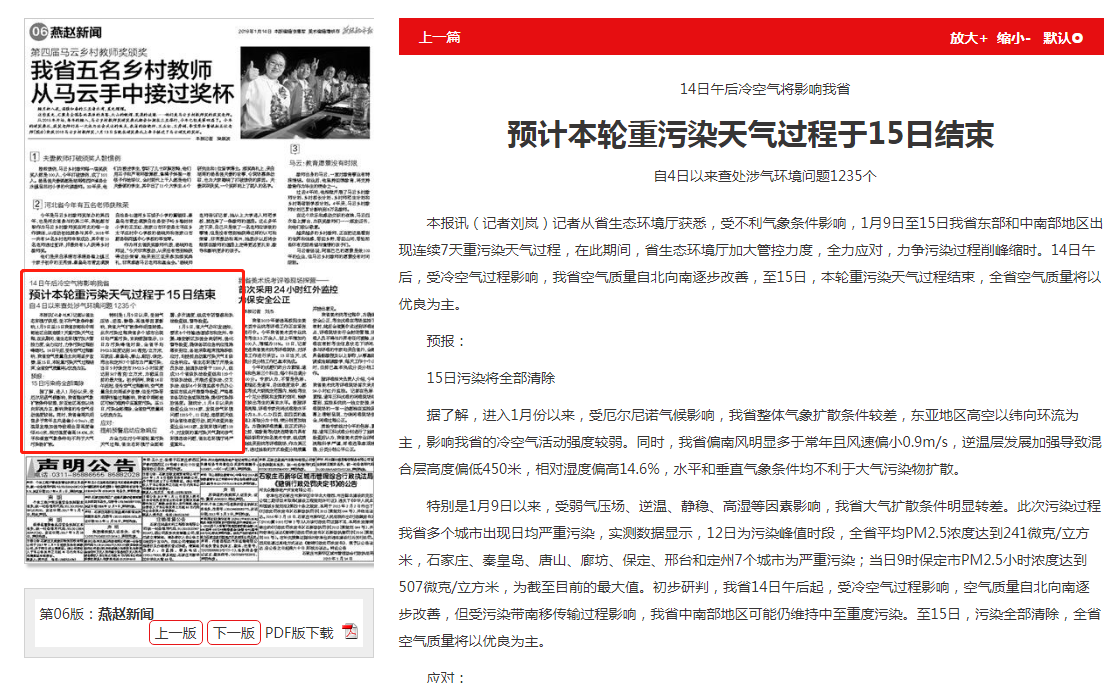 燕赵都市报:预计本轮重污染天气过程于15日结束