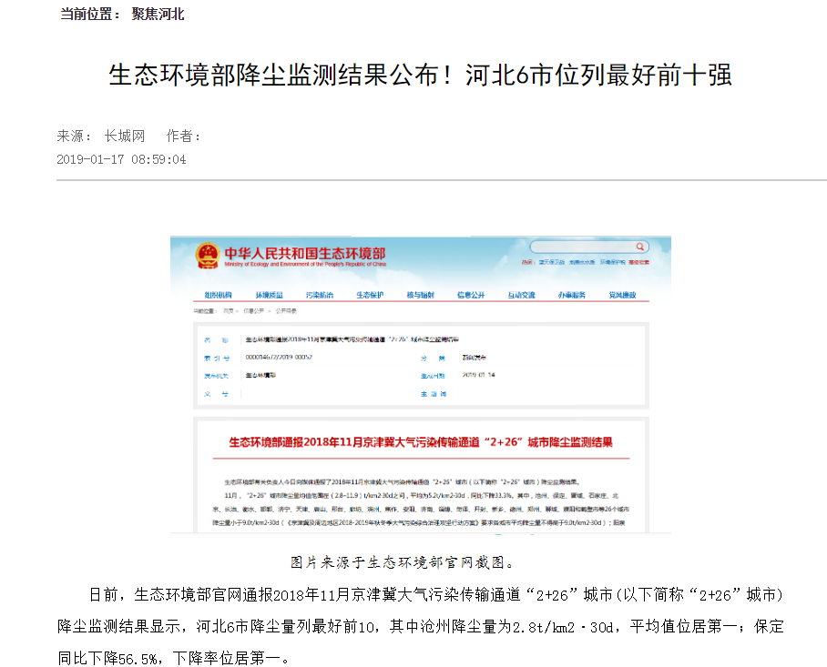 长城网:生态环境部降尘监测结果公布!河北6市位列最好前十强