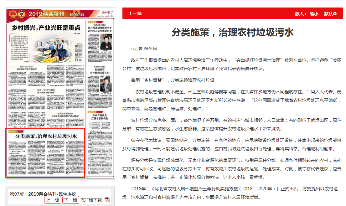 采访中,许多代表委员还提到了其他省市的经验做法,如以政府购买服务的方式,依托精通垃圾分类的保洁公司建设垃圾再生馆,以市场运作方式从源头上破解垃圾分类难;采取“农户一次分类+村保洁员二次分类”的模式,帮助农村垃圾大幅减量……代表委员们认为,治理农村垃圾要“量体裁衣”,符合实际、易于操作的模式才能真正落地可行。
