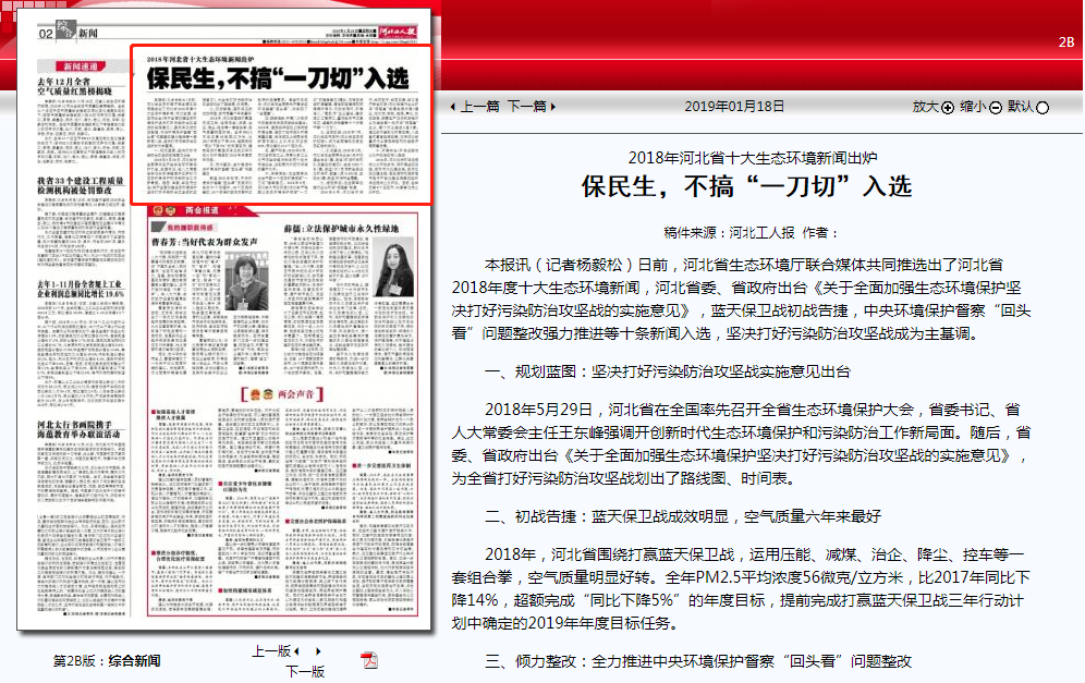 河北工人报:2018年河北省十大生态环境新闻出炉 保民生,不搞“一刀切”入选