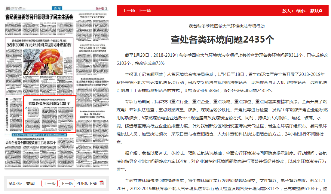 河北日报:我省秋冬季第四轮大气环境执法专项行动 查处各类环境问题2435个