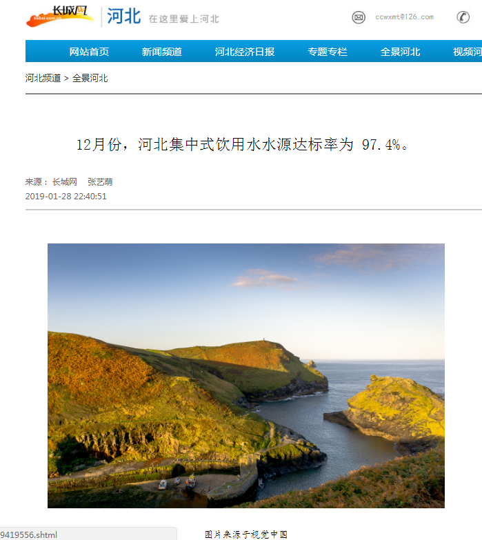长城网:12月份,河北集中式饮用水水源达标率为 97.4%。