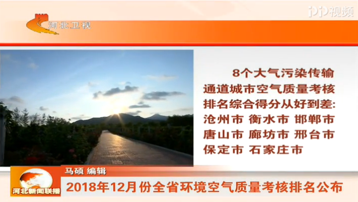 河北电视台《河北新闻联播》:2018年12月份全省环境空气质量考核排名公布