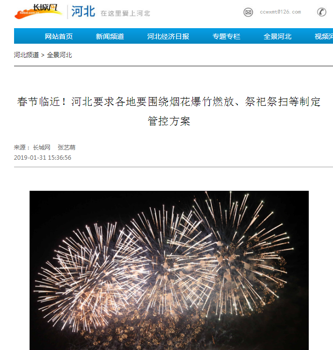 长城网:春节临近!河北要求各地要围绕烟花爆竹燃放、祭祀祭扫等制定管控方案