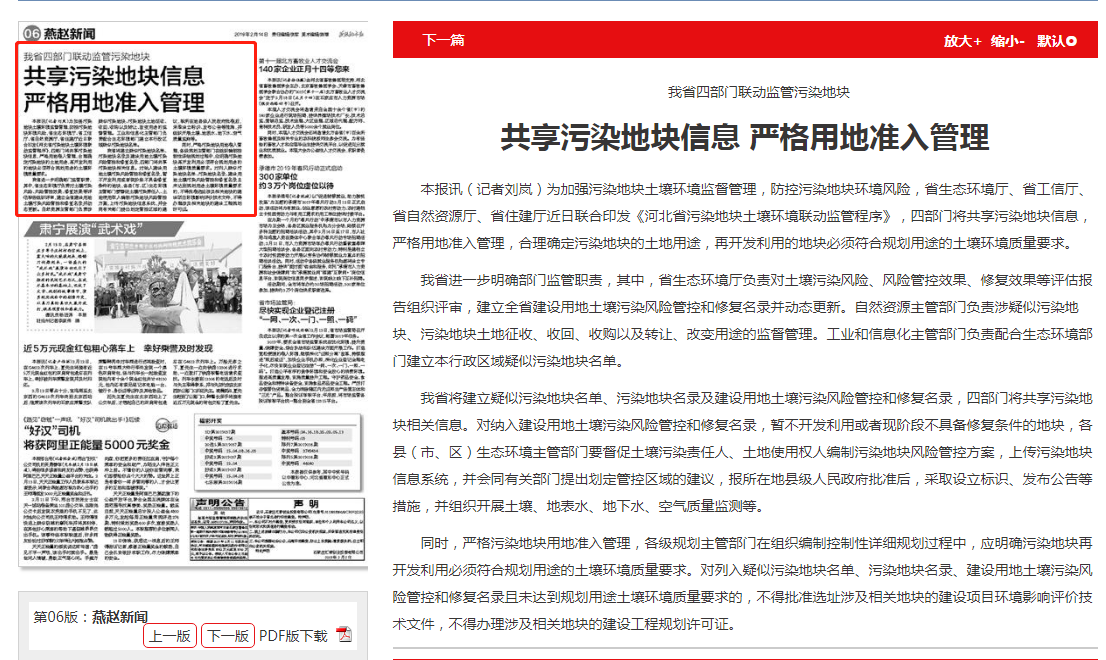 燕赵都市报:我省四部门联动监管污染地块 共享污染地块信息 严格用地准入管理
