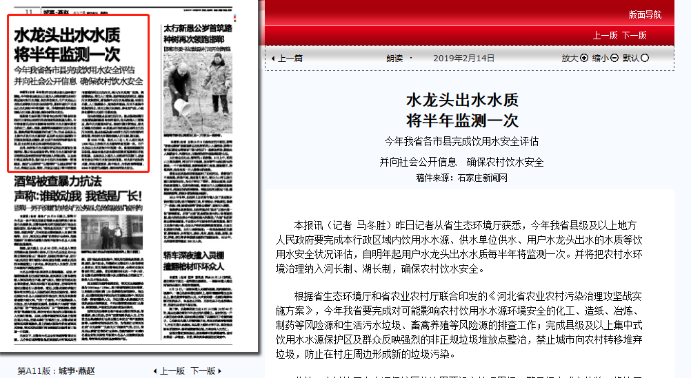 今年我省各市县完成饮用水安全评估并向社会公开信息 确保农村饮水安全