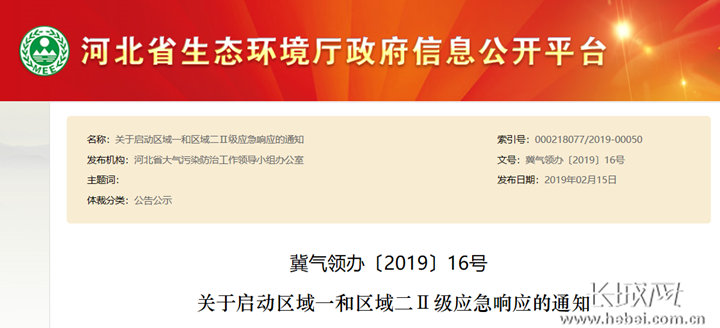 长城网 :最新消息!河北16日起启动重污染天气Ⅱ级应急响应