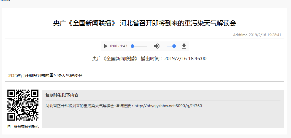央广《全国新闻联播》:河北省召开即将到来的重污染天气解读会