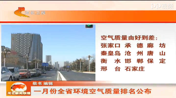 河北卫视《河北新闻联播》:一月份全省环境空气质量排名公布