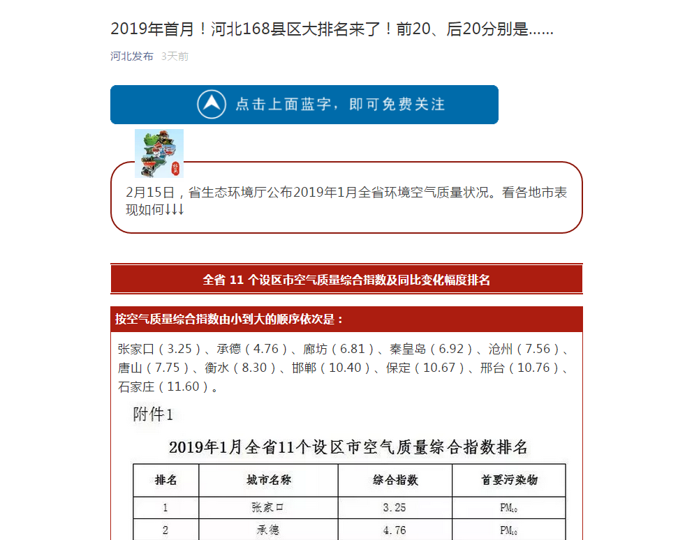 河北发布微信:2019年首月!河北168县区大排名来了!前20、后20分别是……