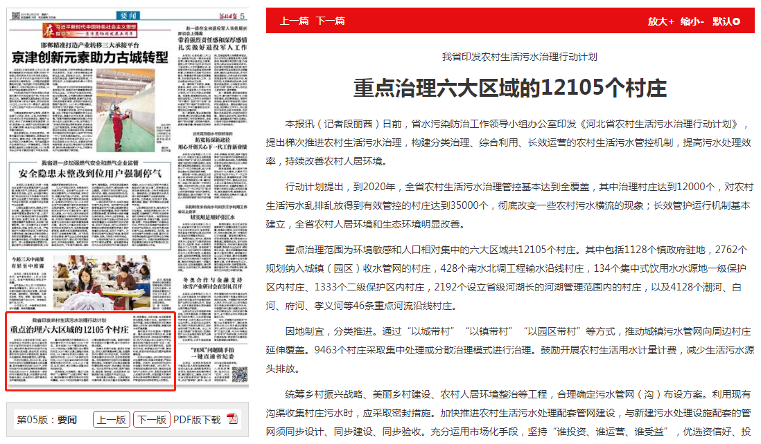 本报讯(记者段丽茜)日前,省水污染防治工作领导小组办公室印发《河北省农村生活污水治理行动计划》,提出梯次推进农村生活污水治理,构建分类治理、综合利用、长效运营的农村生活污水管控机制,提高污水处理效率,持续改善农村人居环境。