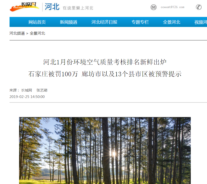 长城网2月25日讯(记者 张艺萌)日前,河北省大气办通报2019年1月份全省环境空气质量考核排名情况。