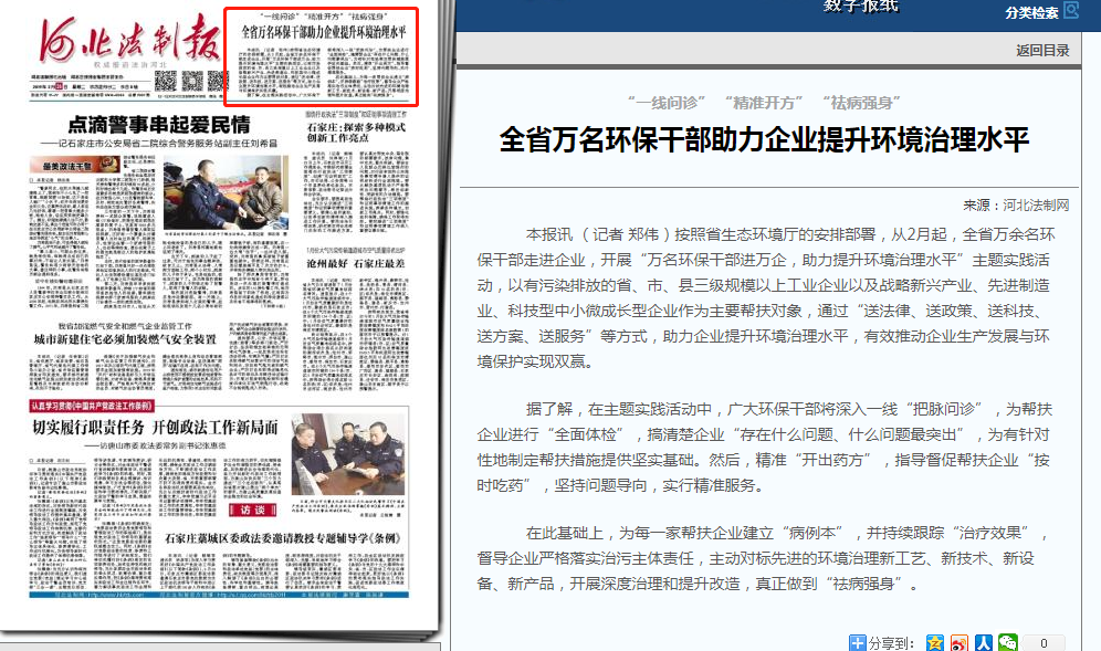 的安排部署,从2月起,全省万余名环保干部走进企业,开展“万名环保干部进万企,助力提升环境治理水平”主题实践活动,以有污染排放的省、市、县三级规模以上工业企业以及战略新兴产业、先进制造业、科技型中小微成长型企业作为主要帮扶对象,通过“送法律、送政策、送科技、送方案、送服务”等方式,助力企业提升环境治理水平,有效推动企业生产发展与环境保护实现双赢。 据了解,在主题实践活动中,广大环保干部将深入一线“把脉问诊”,为帮扶企业进行“全面体检”,搞清楚企业“存在什么问题、什么问题最突出”,为有针对性地制定帮扶措施提供坚实基础。然后,精准“开出药方”,指导督促帮扶企业“按时吃药”,坚持问题导向,实行精准服务。 在此基础上,为每一家帮扶企业建立“病历本”,并持续跟踪“治疗效果”,督导企业严格落实治污主体责任,主动对标先进的环境治理新工艺、新技术、新设备、新产品,开展深度治理和提升改造,真正做到“祛病强身”。