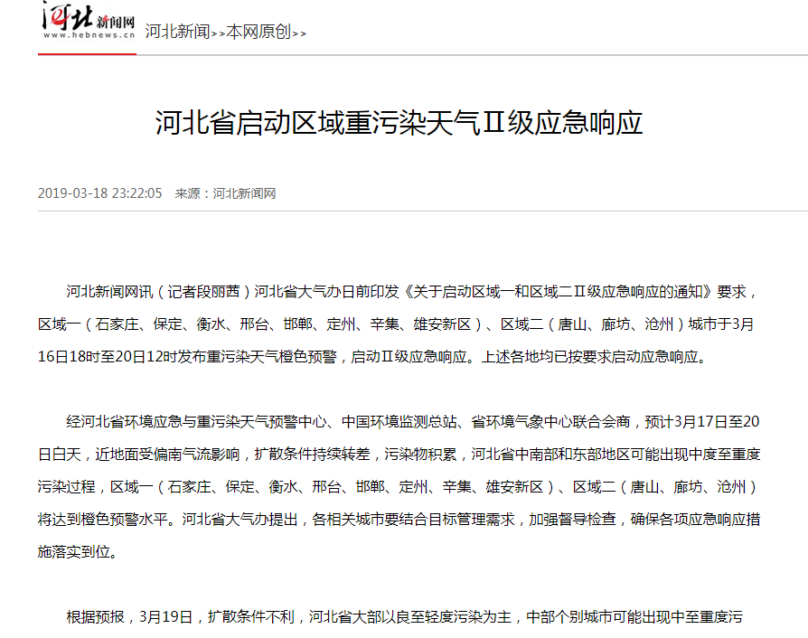 河北新闻网:河北省启动区域重污染天气Ⅱ级应急响应