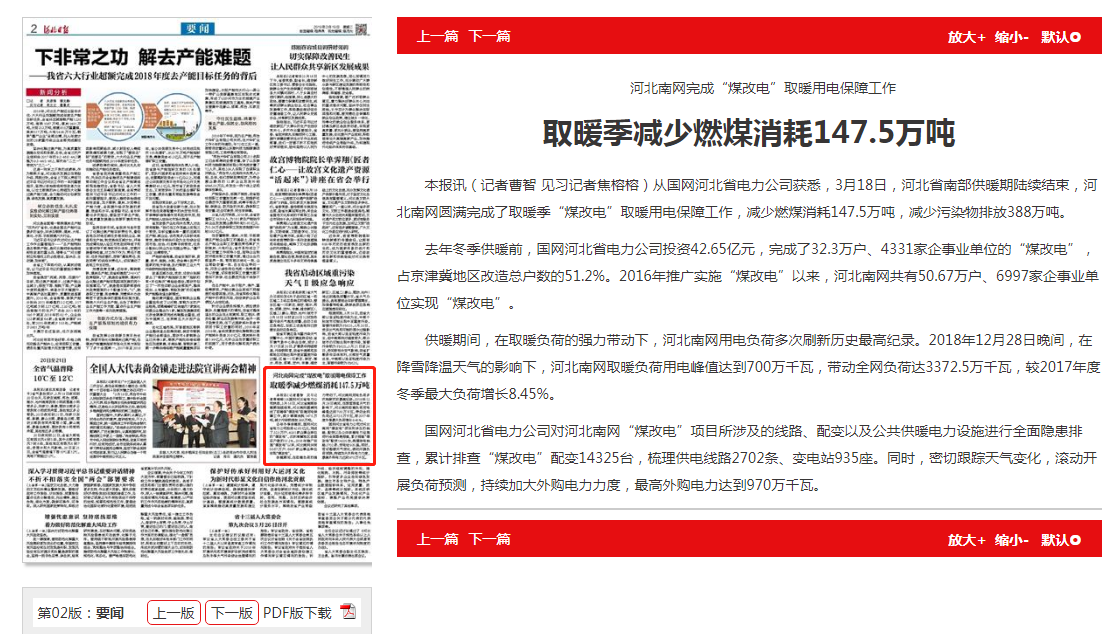 供暖期间,在取暖负荷的强力带动下,河北南网用电负荷多次刷新历史最高纪录。2018年12月28日晚间,在降雪降温天气的影响下,河北南网取暖负荷用电峰值达到700万千瓦,带动全网负荷达3372.5万千瓦,较2017年度冬季最大负荷增长8.45%。