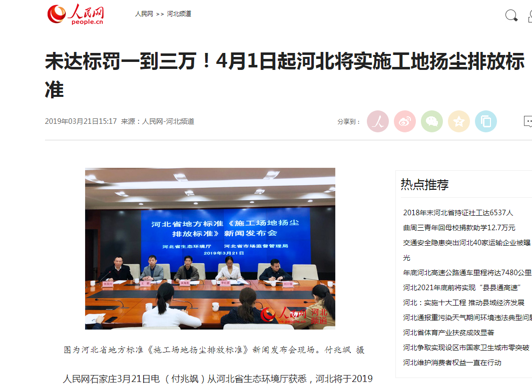 人民网:未达标罚一到三万!4月1日起河北将实施工地扬尘排放标准