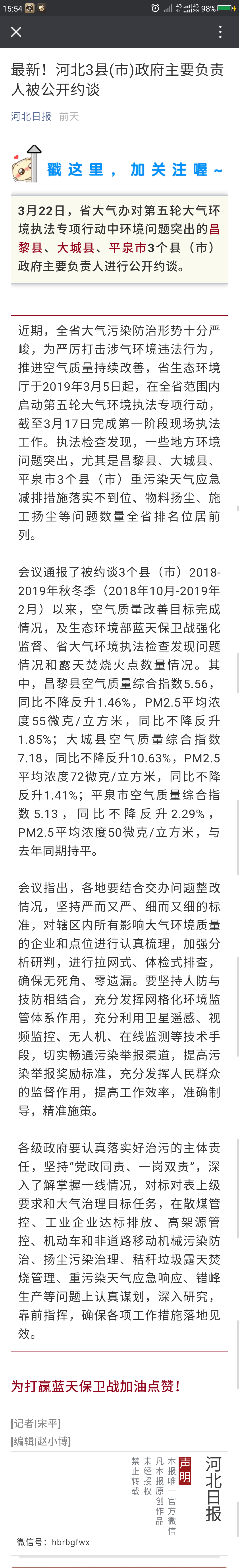 河北日报微信:最新!河北3县(市)政府主要负责人被公开约谈