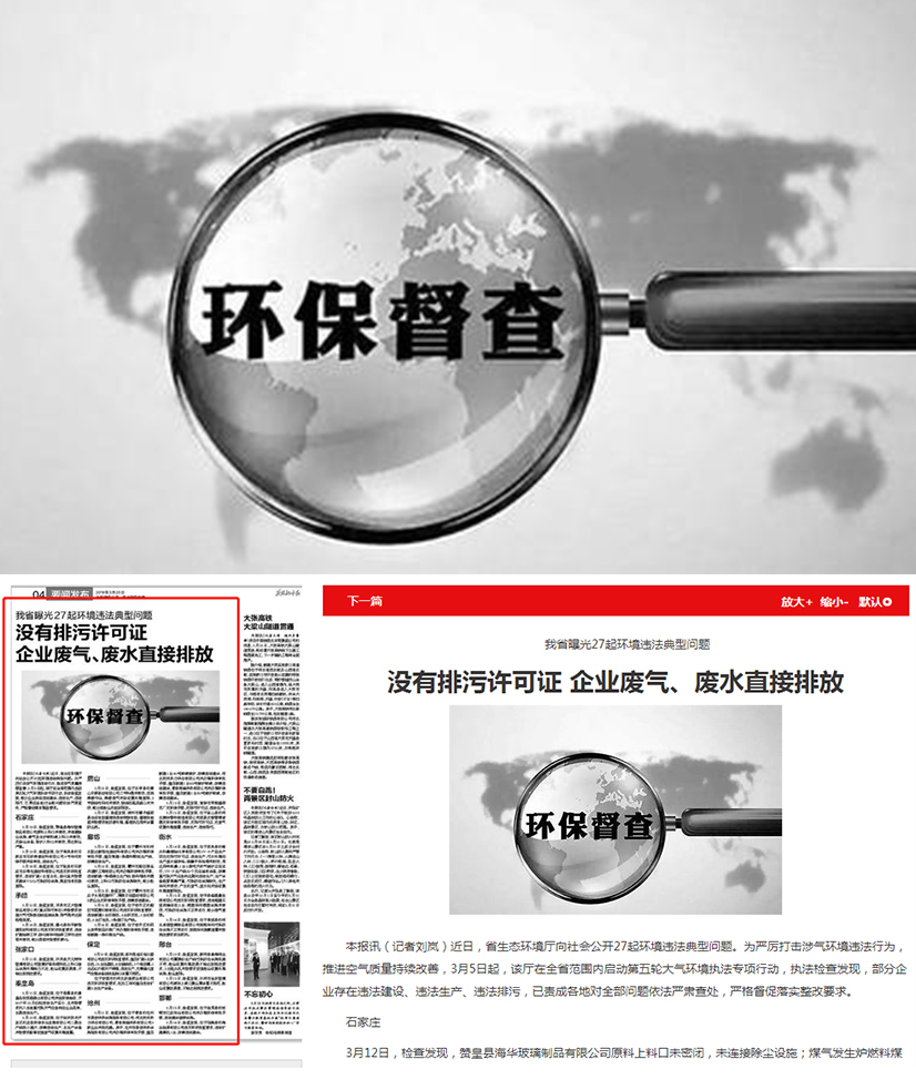 3月12日,检查发现,赞皇县海华玻璃制品有限公司原料上料口未密闭,未连接除尘设施;煤气发生炉燃料煤上料口未密闭,无除尘设备;窑炉入料口未密闭,周边积尘严重。