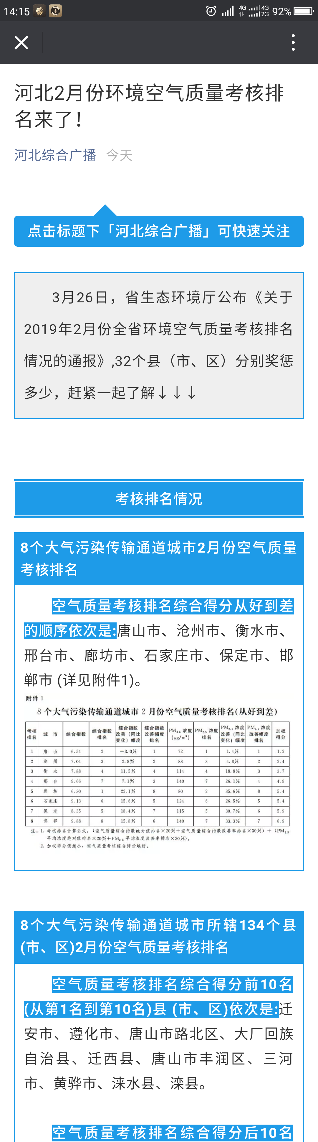 河北综合广播微信:河北2月份环境空气质量考核排名来了!