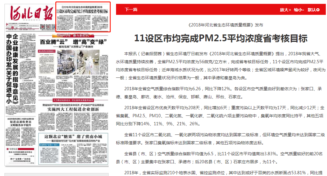 2018年全省空气质量综合指数平均为6.26,同比下降12%。各设区市空气质量由好到差依次为:张家口、承德、秦皇岛、廊坊、衡水、沧州、保定、邯郸、唐山、邢台、石家庄。
