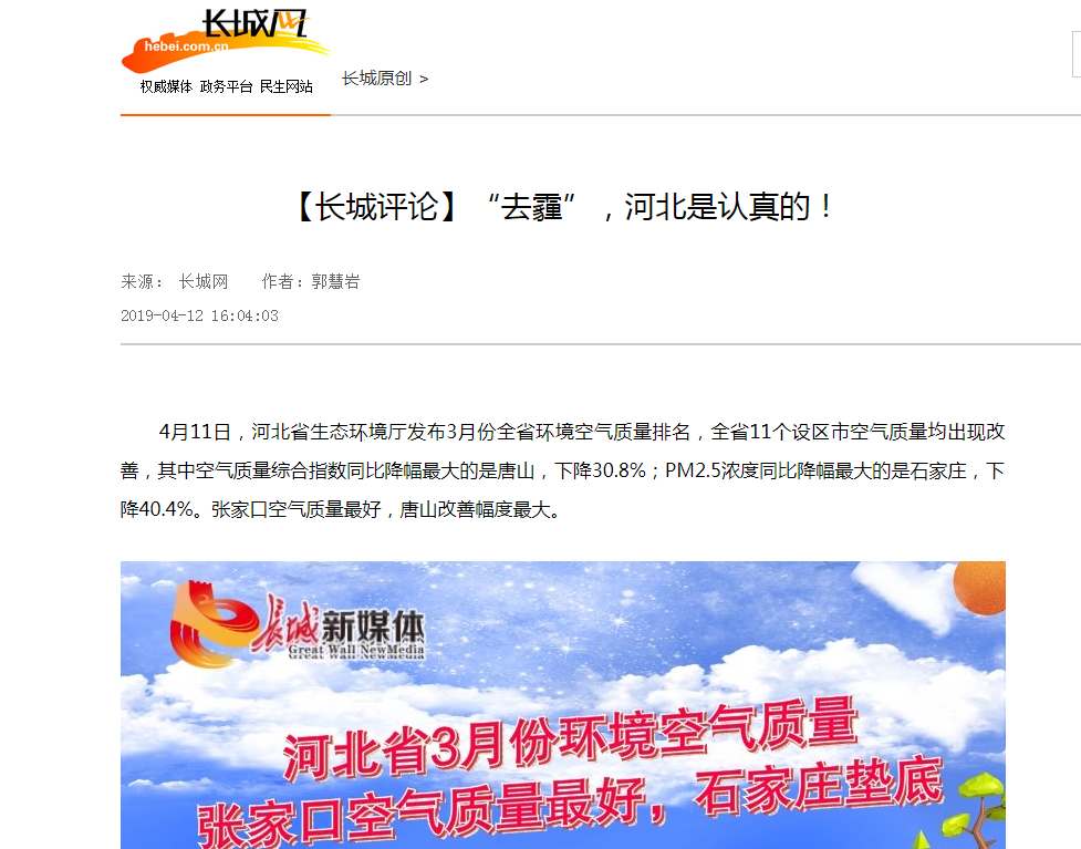 其实,不只是3月份,河北在近些年空气质量都有相当程度地改善。2018年4月,生态环境部对全国2个省份的环境执法工作予以表扬,河北省是其中之一,这是对河北环保治理成效的充分肯定。