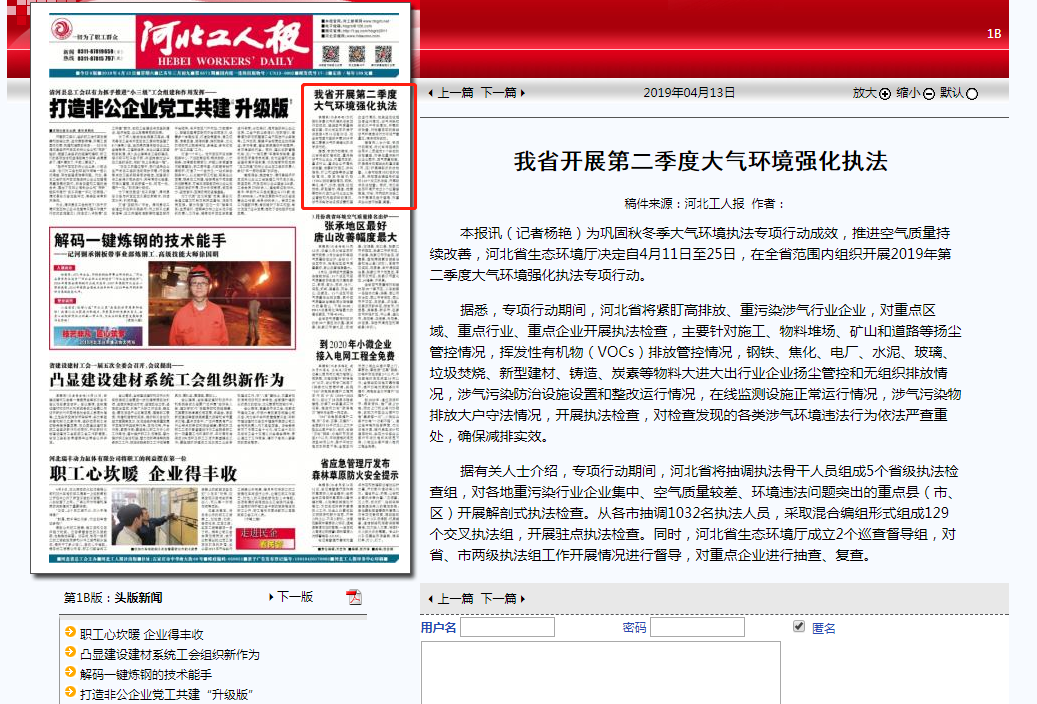 决定自4月11日至25日,在全省范围内组织开展2019年第二季度大气环境强化执法专项行动。
