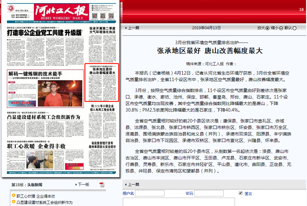 获悉,3月份全省环境空气质量排名出炉,全省11个设区市中,张承地区空气质量最好,唐山改善幅度最大。