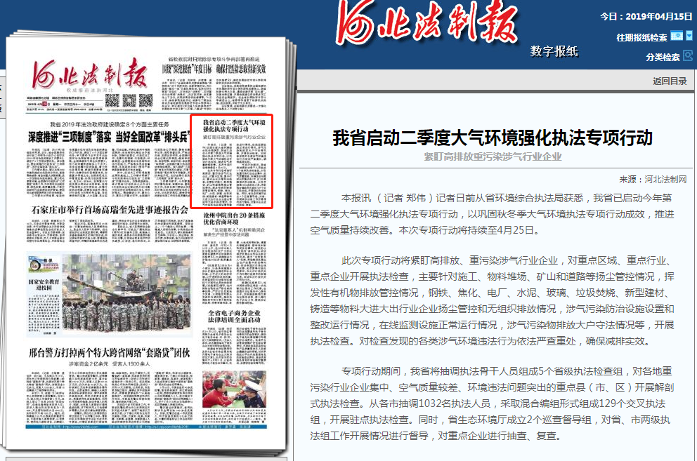 本报讯 (记者 郑伟)记者日前从省环境综合执法局获悉,我省已启动今年第二季度大气环境强化执法专项行动,以巩固秋冬季大气环境执法专项行动成效,推进空气质量持续改善。本次专项行动将持续至4月25日。