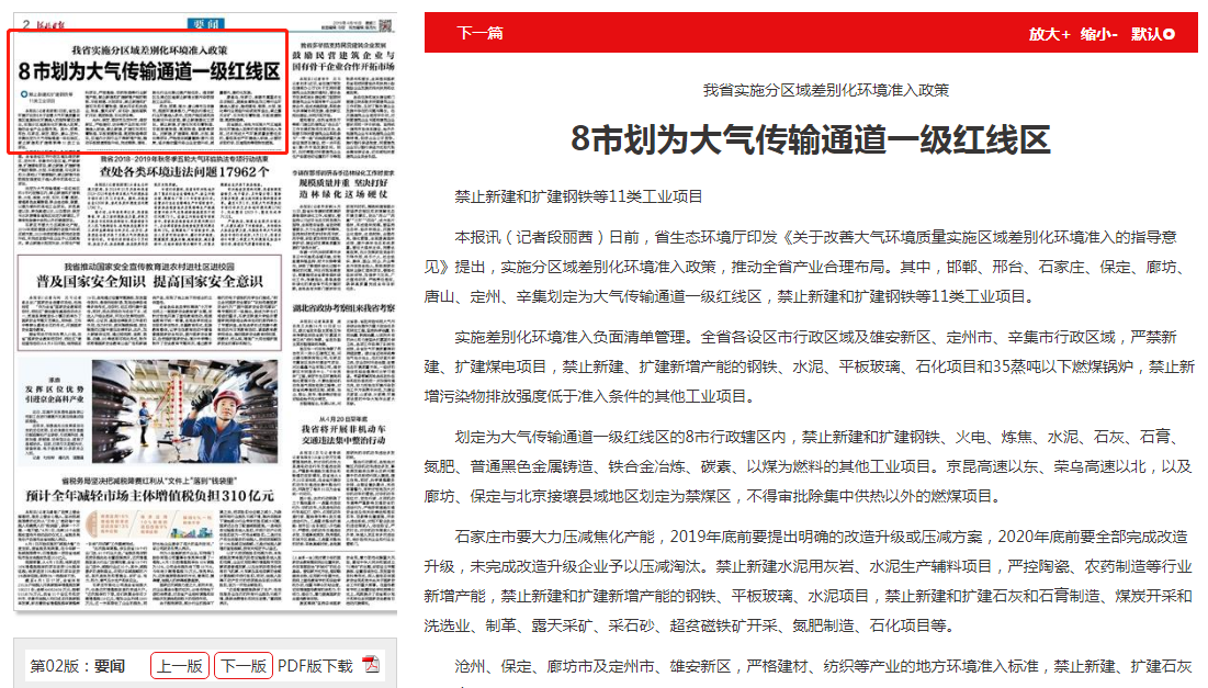 划定为大气传输通道一级红线区的8市行政辖区内,禁止新建和扩建钢铁、火电、炼焦、水泥、石灰、石膏、氮肥、普通黑色金属铸造、铁合金冶炼、碳素、以煤为燃料的其他工业项目。京昆高速以东、荣乌高速以北,以及廊坊、保定与北京接壤县域地区划定为禁煤区,不得审批除集中供热以外的燃煤项目。