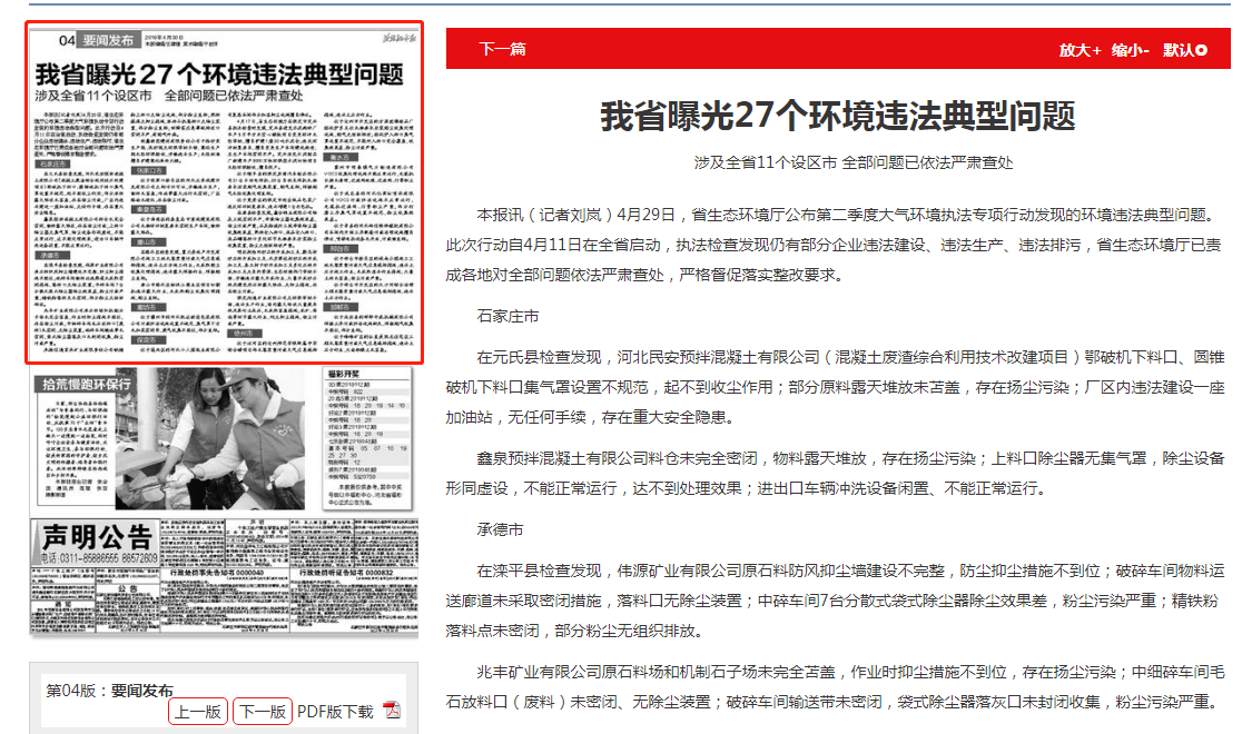 4月17日,东京热 在保定市定兴县执法检查时发现,定兴县进发水泥构件厂年产3万平方米空心楼板项目变更环评未经审批,擅自扩建1座50吨水泥仓;违反环评批复要求,擅自变更生产车间建设构造,且生产车间密闭不严。定兴浩发水泥制品厂新建年产3000万块环保型水泥切块项目未经环保验收,擅自投产。