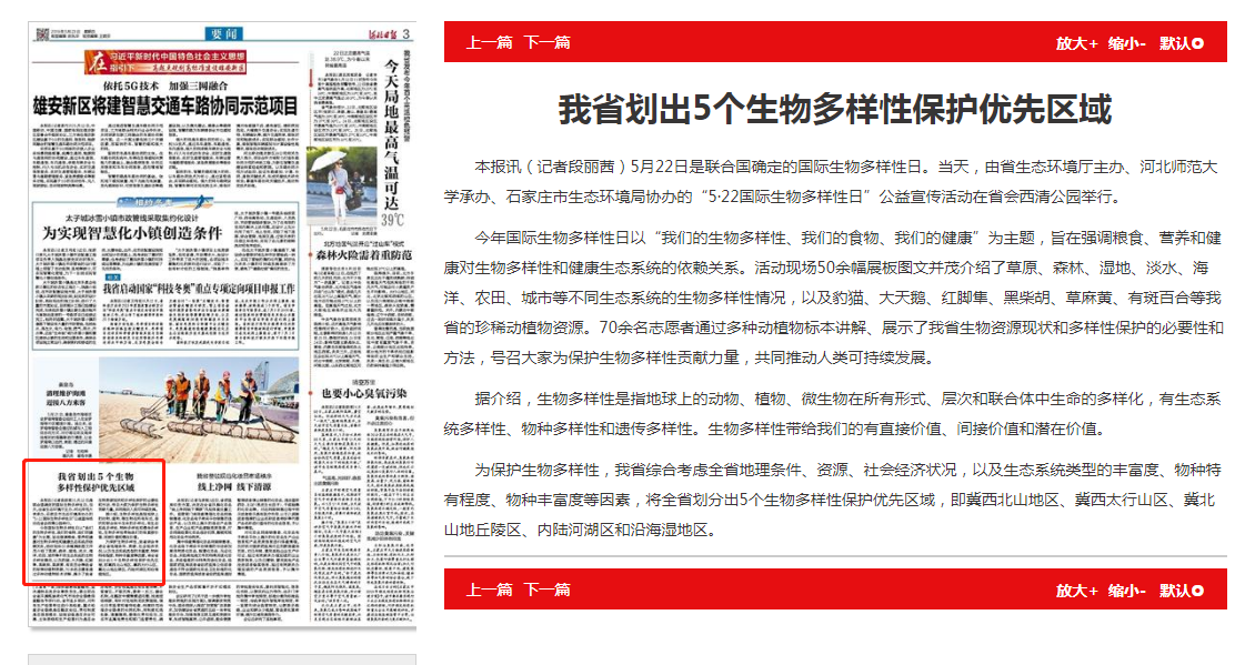 为保护生物多样性,我省综合考虑全省地理条件、资源、社会经济状况,以及生态系统类型的丰富度、物种特有程度、物种丰富度等因素,将全省划分出5个生物多样性保护优先区域,即冀西北山地区、冀西太行山区、冀北山地丘陵区、内陆河湖区和沿海湿地区。