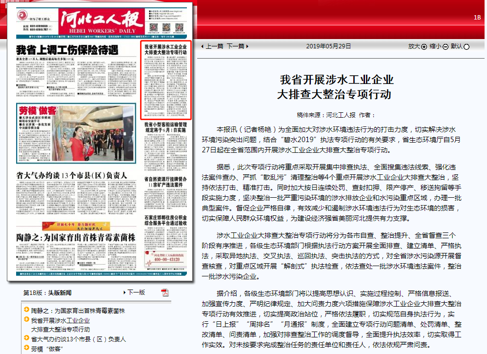 自5月27日起在全省范围内开展涉水工业企业大排查大整治专项行动。 据悉,此次专项行动将重点采取开展集中排查执法、全面搜集违法线索、强化违法案件查办、严抓“散乱污”清理整治等4个重点开展涉水工业企业大排查大整治,坚持依法打击、精准打击。同时加大按日连续处罚、查封扣押、限产停产、移送拘留等手段实施力度,坚决整治一批严重污染环境的涉水排放企业和水污染重点区域,办理一批典型案件。督促企业严格自律,有效减少和遏制涉水环境违法行为对生态环境的损害,切实保障人民群众环境权益,为建设经济强省美丽河北提供有力支撑。 涉水工业企业大排查大整治专项行动将分为各市自查、整治提升、全省督查三个阶段有序推进,各级生态环境部门根据执法行动方案开展全面排查、建立清单、严格执法,采取异地执法、交叉执法、巡回执法、突击执法的方式,对全省涉水污染源开展督查核查,对重点区域开展“解剖式”执法检查,依法查处一批涉水环境违法案件,整治一批涉水污染企业。 据介绍,各级生态环境部门将以提高思想认识、实施过程控制、严格信息报送、加强宣传力度、严明纪律规定、加大问责力度六项措施保障涉水工业企业大排查大整治专项行动有效推进,切实提高政治站位,严格依法履职,切实规范自身执法行为,实行“日上报”“周排名”“月通报”制度,全面建立专项行动问题清单、处罚清单、整改清单、问责清单,加强对排查整治工作的调度督导,全面提升执法效率,切实取得工作实效。对未按要求完成整治任务的责任单位和责任人,依法依规严肃问责。