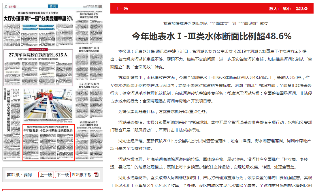本报讯(记者赵红梅 通讯员齐婕)近日,省河湖长制办公室印发《2019年河湖长制重点工作推进方案》提出,着力解决河湖长重视不够、履职不力、措施不实的问题,进一步压实各级河长责任,加快推进河湖长制从“全面建立”到“全面见效”转变。